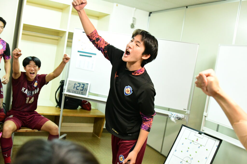 両チーム1人ずつ成功して迎えた2人目。開誠館のキッカーは髙橋。クロスバーに当てます。