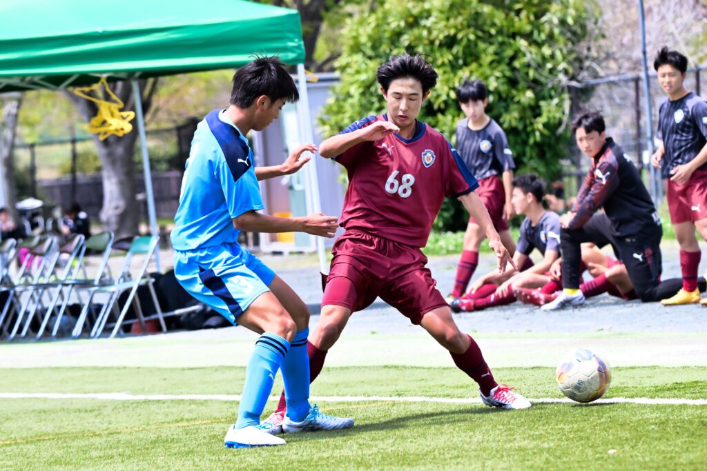 ハーフタイムには中根コーチから「もっと相手陣内でプレーしよう」と明確な指示が出る。後半はその言葉どおり、開誠館が主導権を握り返す。ドリブルもパスも冴え、相手を押し込む時間が続いた。しかしゴール前での思い切りが足りず、シュートに迫力が出ない。